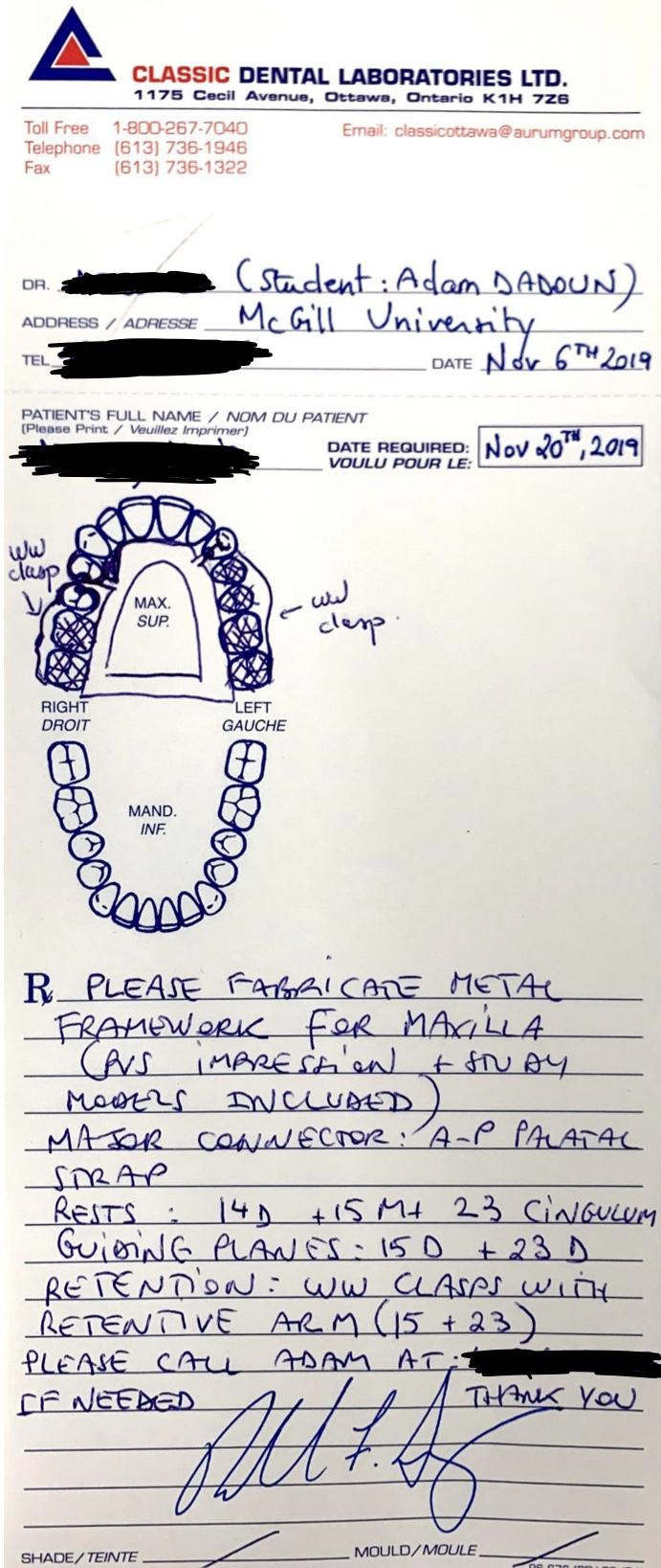 • Start Fabrication of upper and lower partial dentures (US # 8 and 9)