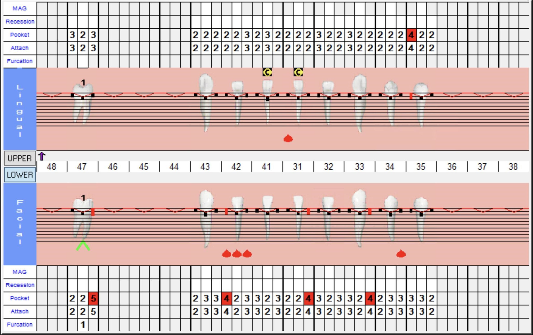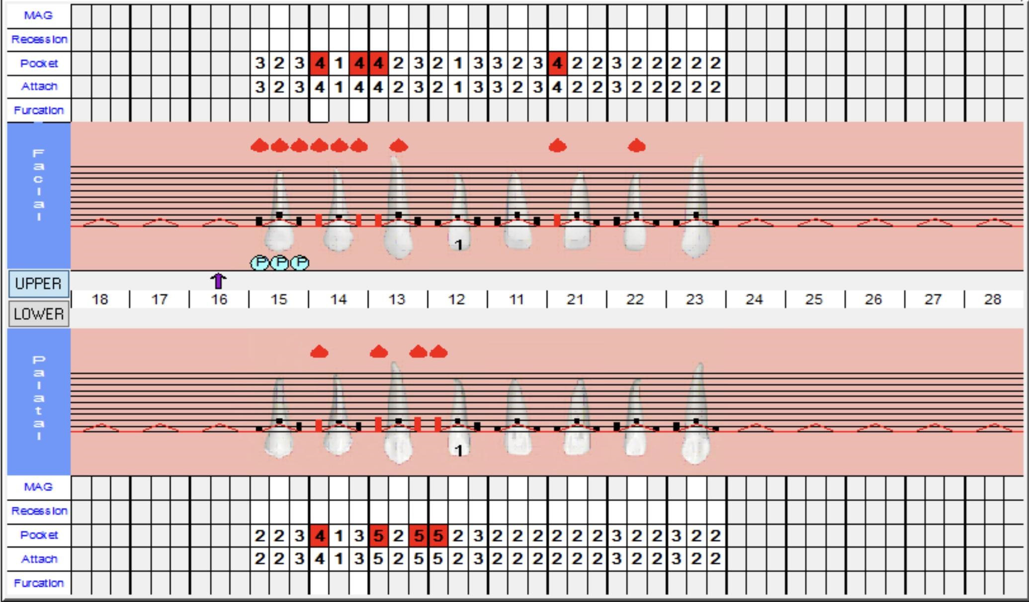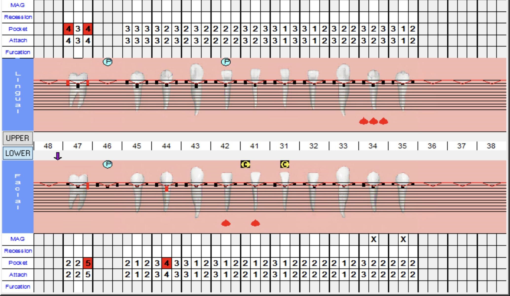• Reinforced OHI. Patient scheduled on a 4 month perio maintenance cleaning to reduce the 5 mm pockets down to 3 mm.