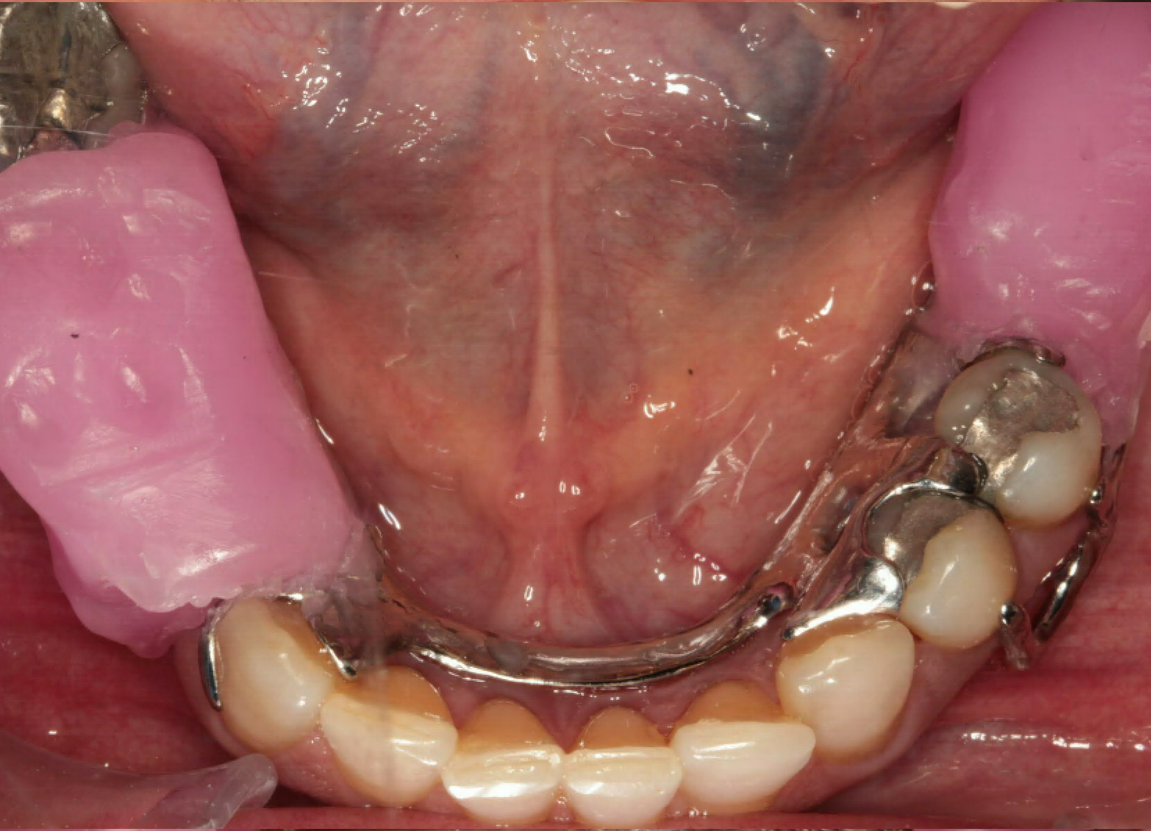 • Had upper and lower partial dentures made by a dentist cousin in Algeria. She stopped wearing them because they did not fit well and the lingual bar was bothering her.