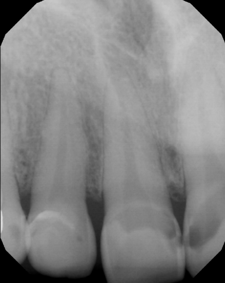 • Conclusion: The radiolucencies seen at the apex of 11 and 21 (US # 8 and 9) were not periapical lesions. I retook a PA with a different angle (see next slide)