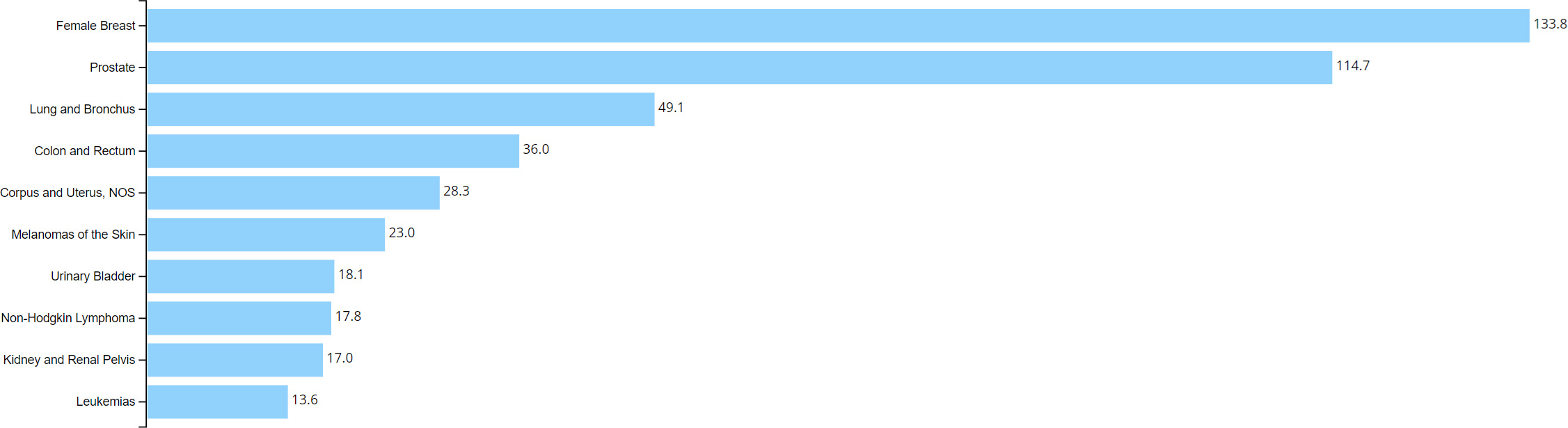 Source: U.S. Cancer Statistics Working Group. U.S. Cancer Statistics Data Visualizations Tool. U.S. Department of Health and Human Services, Centers for Disease Control and Prevention and National Cancer Institute; https://www.cdc.gov/cancer/dataviz, released in June 2024.