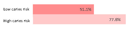 Risk factors for recurrent caries include a high caries risk level, with up to a more than four-fold risk compared to individuals at low risk for caries.5Demarco FF, Collares K, Correa MB et al. Should my composite restorations last forever? Why are they failing? Braz Oral Res 2017;31(suppl 1):e56. doi: 10.1590/1807-3107BOR-2017.vol31.0056. In one study in practice-based settings, for patients with high and low caries risk levels and no parafunctional habits, 77.8% and 51.1% of replacements were caused by dental caries.11Laske M, Opdam NJM, Bronkhorst EM et al. Risk Factors for Dental Restoration Survival: A Practice-Based Study. J Dent Res 2019;98(4). https://doi.org/10.1177/002203451982756. (Figure 2) The failure rate was higher than in controlled studies.