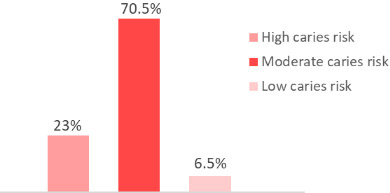 These findings are corroborated by a second practice-based setting with 76 dentists and more than 10,000 restorations placed (amalgams and composites).17Noaman BR, Fattah LD. The Relationship of Caries Risk and Oral Hygiene Level with Placement and Replacement of Dental Restorations. Clin Stomatology. Acta Medica Academica 2021;50(3):406-13. doi: 10.5644/ama2006-124.362. The majority of replacement restorations were due to recurrent caries. Among patients who had restorations replaced, 50.9% had moderate oral hygiene and 46% poor oral hygiene, while 47.7% were patients with a high caries risk level. For Class II replacement restorations, 23%, 70.5% and 6.5% of patients, respectively, had high, moderate and low caries risk levels. (Figure 3)