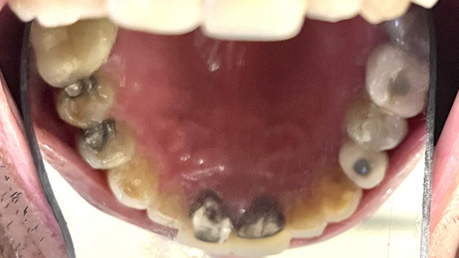 Cultural and educational history: Growing up in a small Italian town, the patient stated that his parents worked in the agricultural industry and did not enforce any educational requirements on him. He stated that he finished secondary school but did not pursue further education. His parents did not have a strong educational background either. In school and at home, he was never taught how to properly take care of his oral health. Thus, he stated that his dental knowledge was low. The culture of his Italian town was primarily focused on agriculture and farming. He stated that it was always a busy 10-12 hour work day and he did not have time to focus on anything other than work and basic health needs, such as eating and sleeping. He stated that the busy work culture was reinforced throughout his community, rather than developing work-life balance. When asked about his adolescent dental history in Italy, he stated that he had been to the dentist less than 15 times. He does not recall what had been done or if they provided oral hygiene instruction (OHI) to him. In the Italian culture, he discussed his frequent consumption of dairy products and sugary foods. He stated that he would drink milk throughout the day, eat cheese regularly, and snack on Italian sweets. He remembers his adolescent meals to consist primarily of refined carbohydrates, such as bread and pasta. Ultimately, I concluded that he has had a high caries risk from a young age based on his cariogenic diet, snacking habits, and cultural/educational/social background.